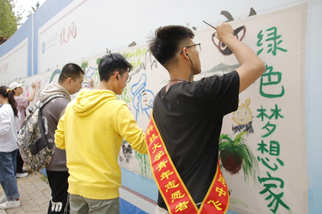 为了培养同学们爱护校园、保护环境的意识,共同营造绿色整洁的生活环境,5月9日上午10点,土建学院青年志愿者协会在A餐南门举办了“聚科大之美,献校庆之礼”系列美育活动之“绿色梦想家”彩绘活动。