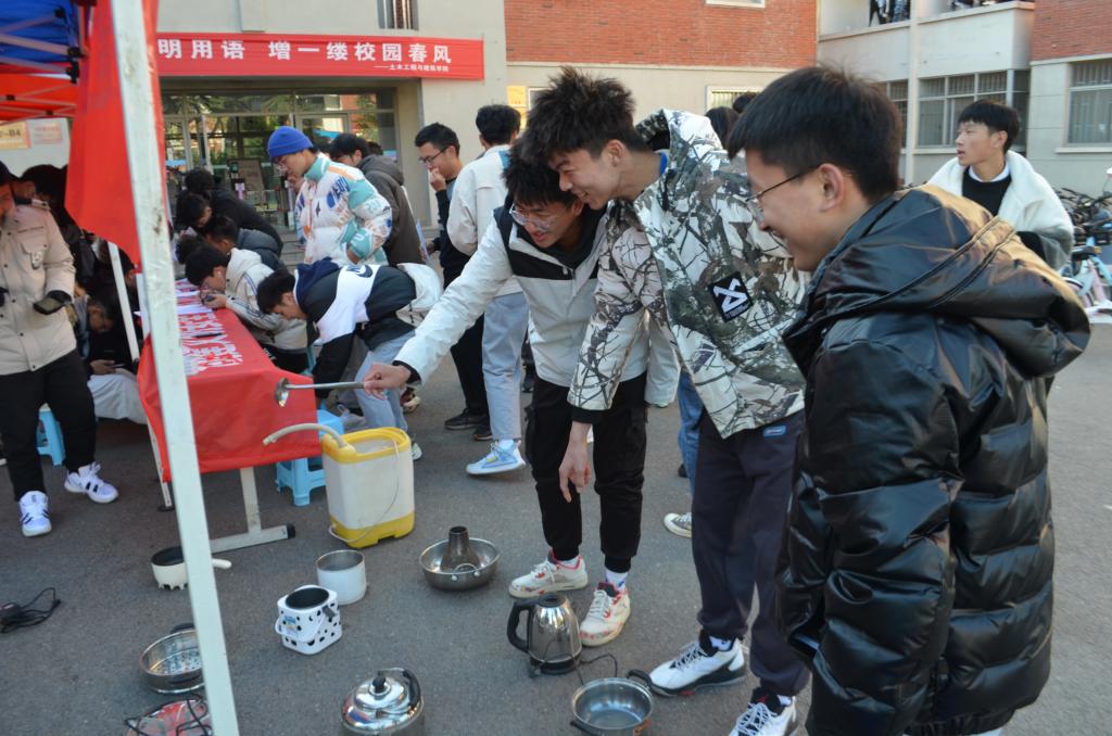 活动伊始,土建学院自律会工作人员结合因使用违禁电器而引发的安全事故案例向同学们讲解了违禁物品的危害以及远离违禁物品的重要性,并展示了宿舍内常见的违禁电器,号召大家远离违禁危险物品,构建文明安全校园;随后,活动工作人员在活动场地发放日常安全知识问卷,同学们在现场积极踊跃参与答题,并纷纷在现场的条幅上签字,表明了同学们远离违禁电器,维护宿舍安全的决心,进一步提升了同学们远离违禁物品的自觉性和主动性,切实守好校园安全底线。