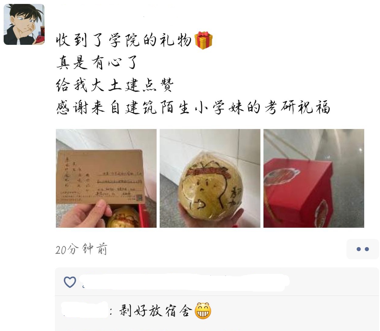 对于有课无法到场的学生,辅导员老师们专门反复嘱咐班长团支书,一定要将没领到的学生们统计名单,补发礼物,让每一位考研学子都能享受到学院的关爱。