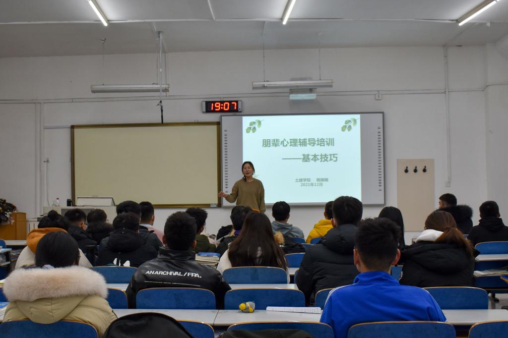 为了让新生朋辈辅导员们能够更加深刻地认识到自身职责的重要性,更好地发挥朋辈互助的作用,努力营造“助人—自助—互助” 的良好氛围。2021年12月20日,土建学院学院在S1-209召开2021级新生朋辈辅导员培训会。培训会由学院辅导员鲍娜娜主讲,心理委员、心理联络员、宿舍心理观察员参加。