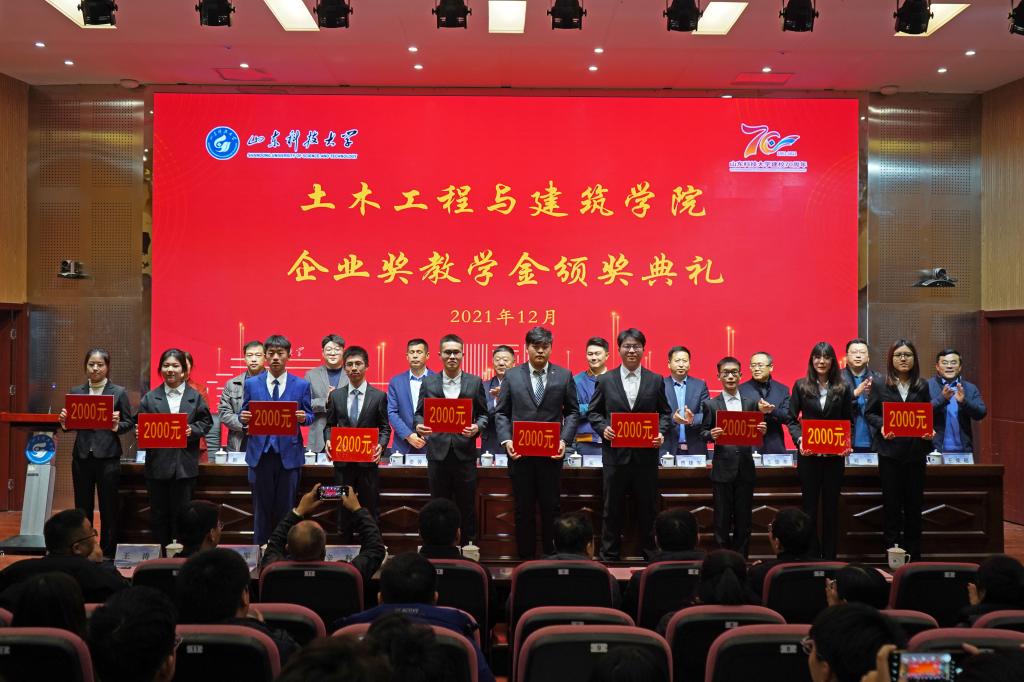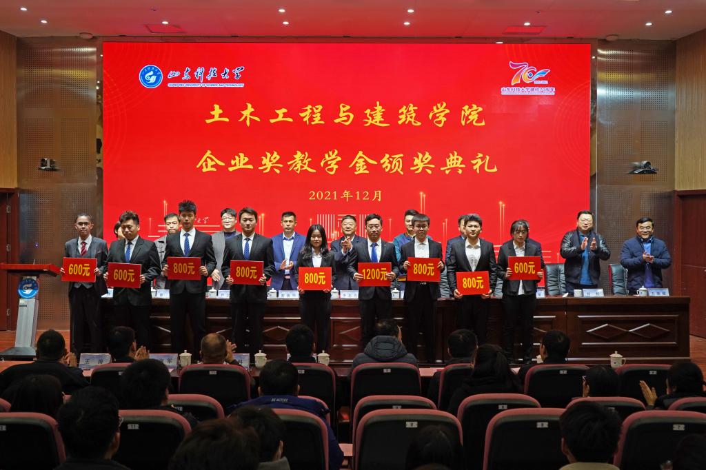 典礼上,尹立明宣读了《关于公布土建学院2021年企业奖教学金获奖名单的决定》,此次颁发的企业奖教学金总计15万余元,获奖教师14人,学生74人。与会领导嘉宾为获奖教师和学生颁发了奖教学金。