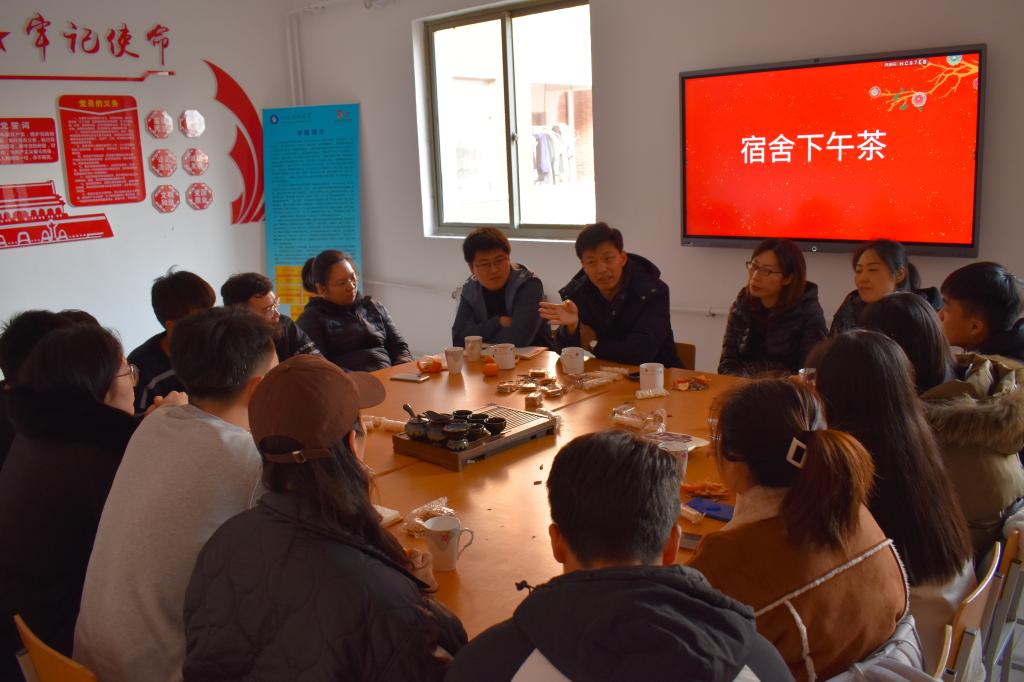 为进一步了解工程管理专业高年级学生的学习生活情况,解决他们在就业、考研和考公等方面的问题,土建学院于12月22日开展“宿舍下午茶”活动。工程管理系党支部书记孙凌志、工程管理系主任王永萍和工程管理系老师孙琳琳做客“宿舍下午茶”,学生工作办公室辅导员张翌、刘超以及12名2018级、2019级学生代表到场参加。