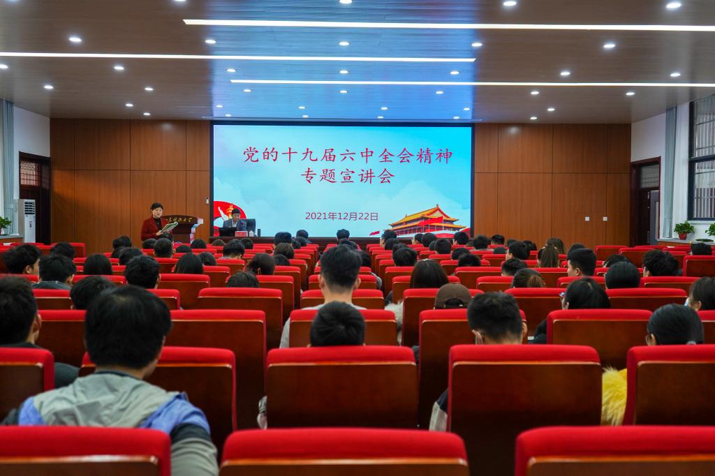 12月22日下午,土建学院在J15-136报告厅举办党的十九届六中全会精神宣讲会。会议邀请“山海泉”理论宣讲团成员、马克思主义学院副教授贾强老师进行宣讲。土建学院党委副书记高静主持宣讲会,学院全体辅导员老师及学生代表参加会议。