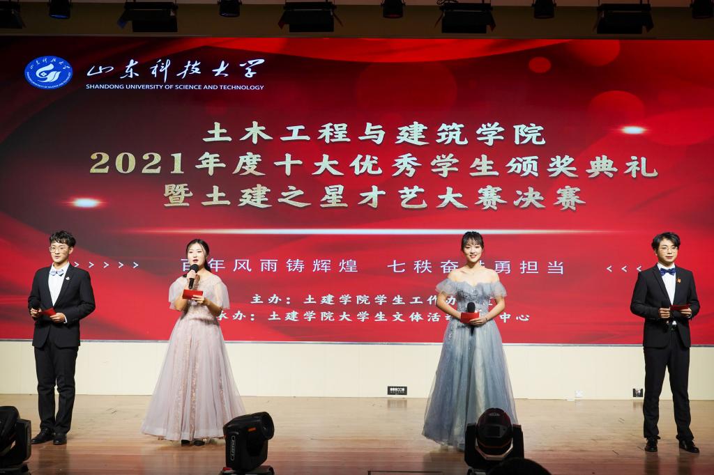青春弱冠展风采,土建学子绘芳华。为展现土建学子的风采与魅力,丰富学生课余生活,12月26日,土建学院于大学生活动中心二楼报告厅隆重举办2021年度“十大优秀学生”颁奖典礼暨第十七届“百年风雨铸辉煌,七秩奋进勇担当”土建之星才艺大赛决赛。土建学院院长王崇革,学院党委副书记高静,学院党委委员、建筑与城乡规划系支部书记代朋,建筑环境与能源应用工程系老师李慧敏,学生工作办公室主任朱统汉以及土建学院全体辅导员老师应邀参加了本次活动。