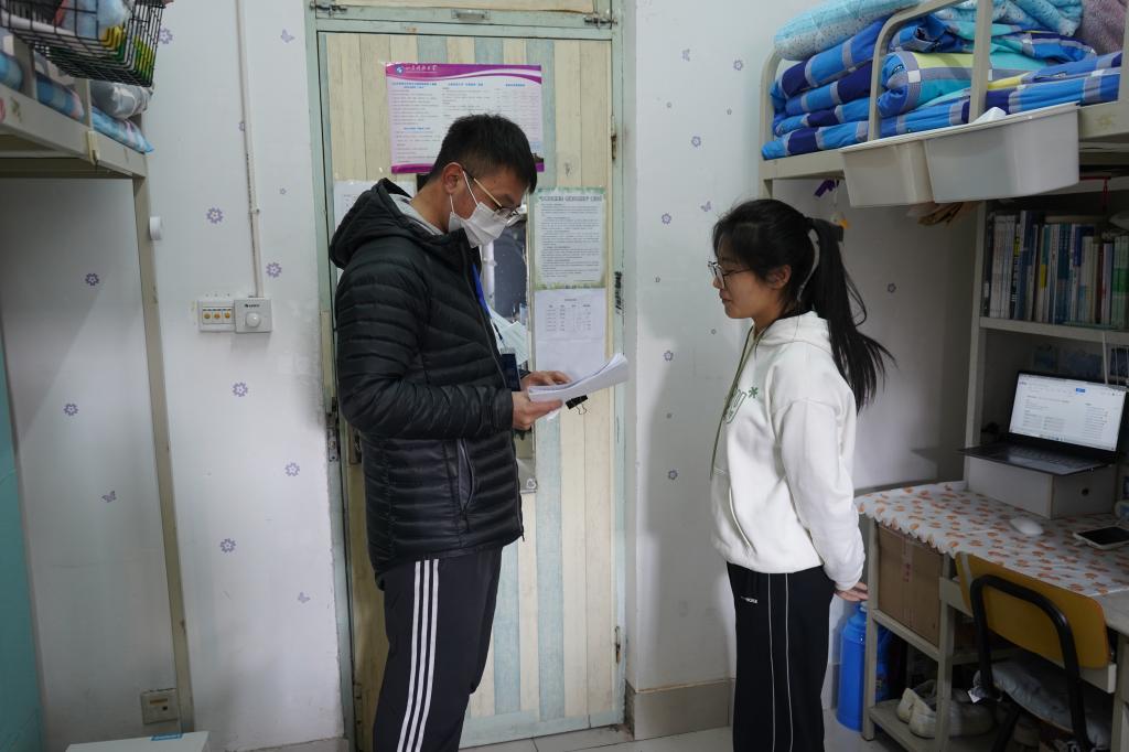 各楼长每天至少与各层层长见一次面,传达学校疫情防控最新要求。利用晚上时间,各辅导员进入学生宿舍,与学生面对面谈心谈话,了解学生思想动态、网课学习、毕业生就业等情况,及时解决学生所面临的思想困难和实际困难。