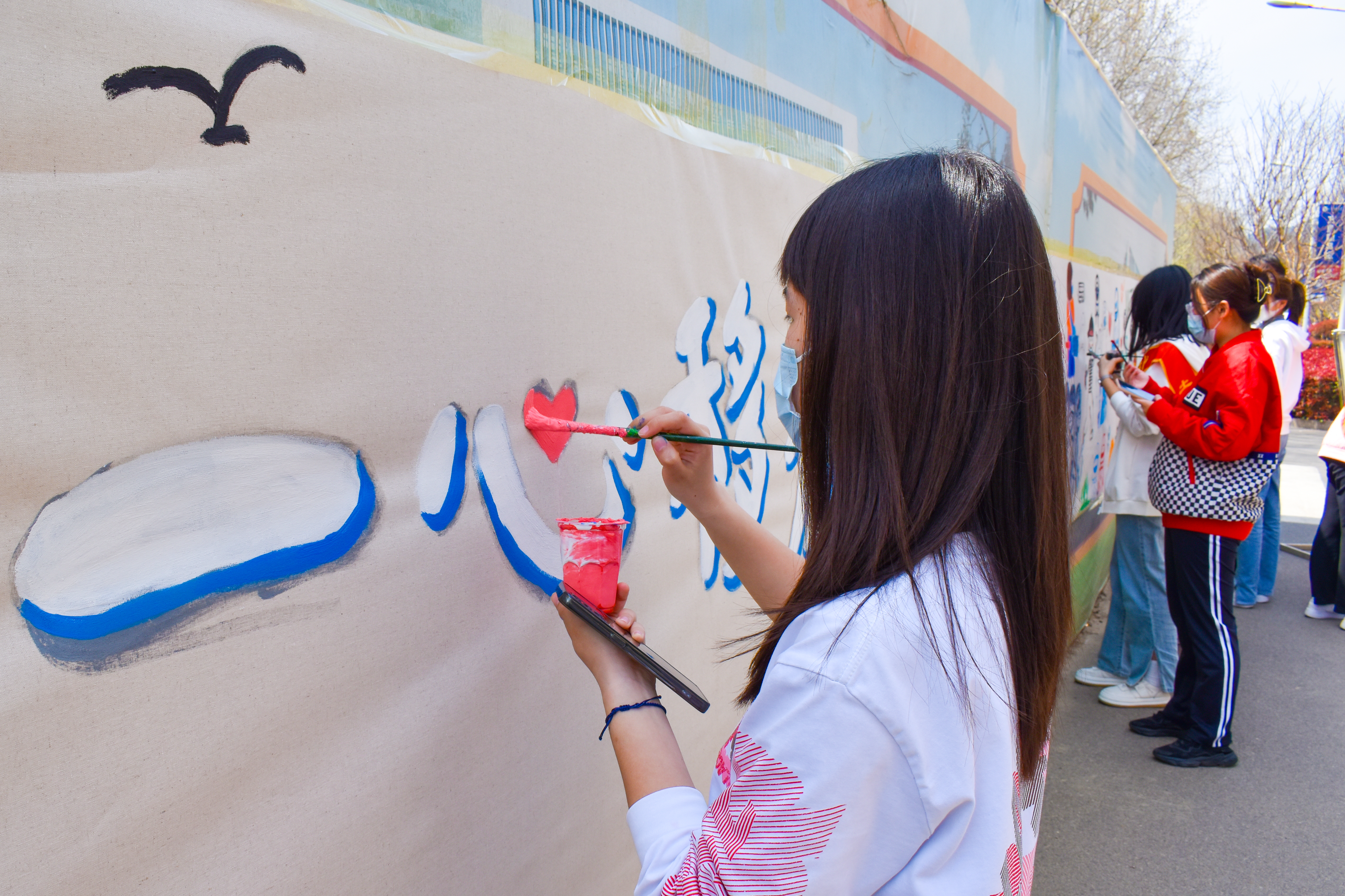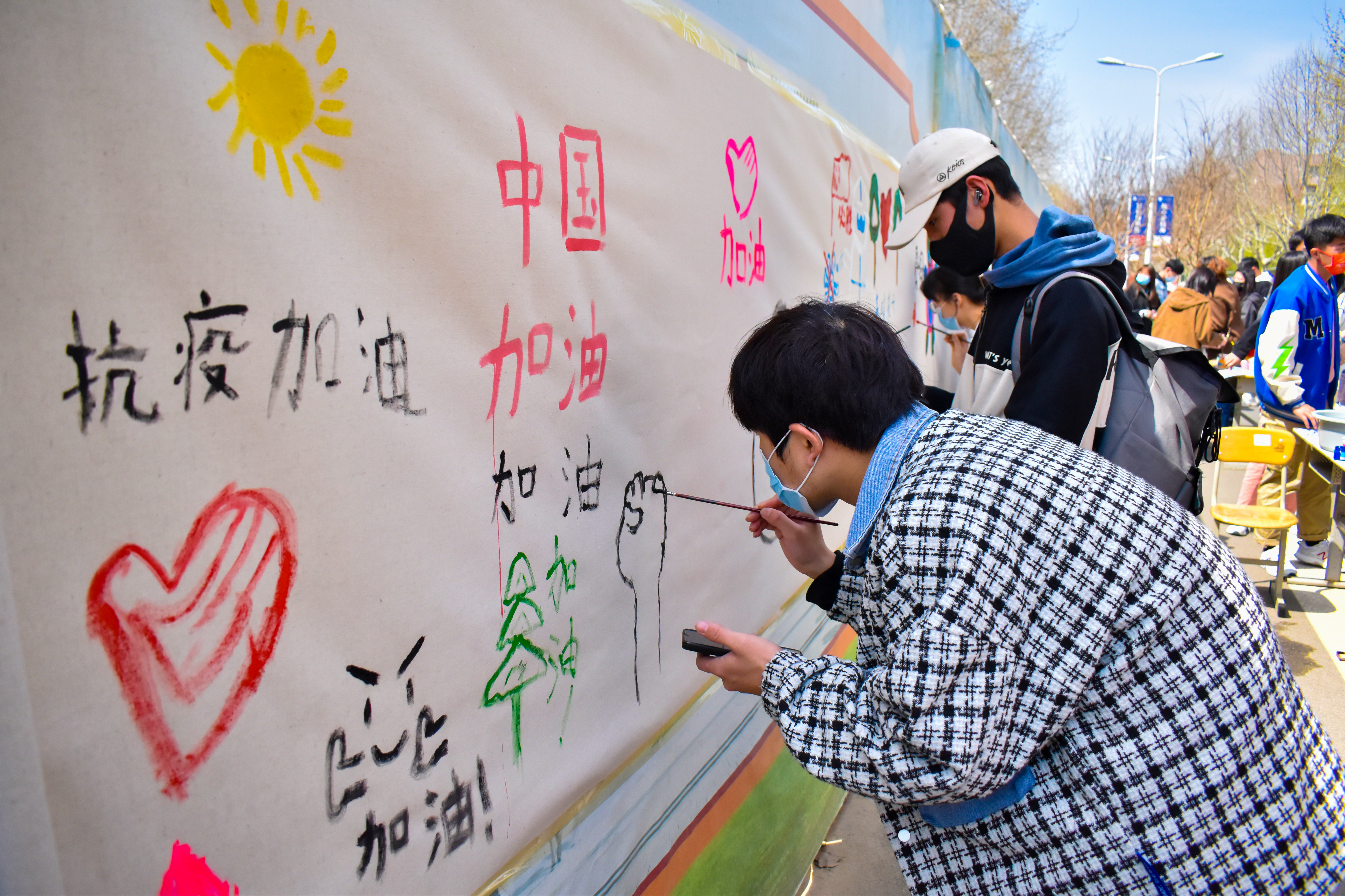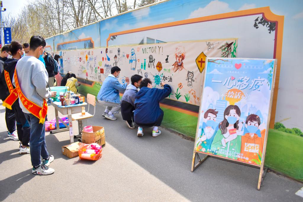 彩绘过程中,吸引了许多师生驻足欣赏。同学们纷纷表示:现如今疫情仍旧反复,身为新时代大学生的我们或许无法奋战于抗疫前线,但也可以做一些力所能及的事助力疫情防控,传递力量与温暖,肩负起青年大学生的使命与担当。