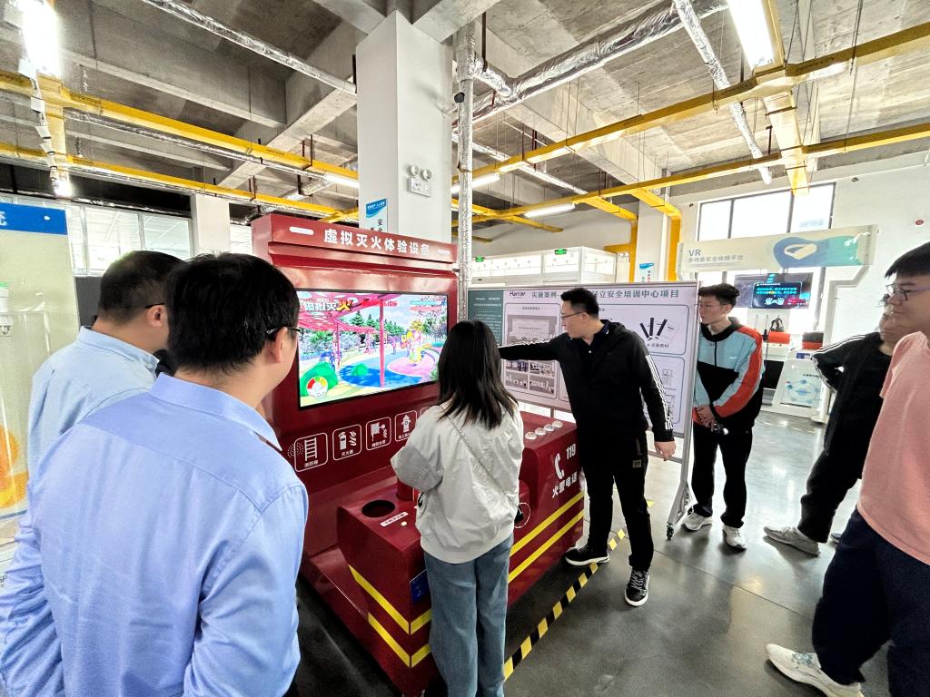 参观期间,青岛航特教研科技有限公司总经理李自才详细介绍了近年来公司专注于职业安全教育领域产品研发和教育教学资源服务,在服务全国高校安全教育、企业职业安全素质教育培训等方面所做的一系列创新性工作。随后,李自才带领大家参观了主题警示、典型事故警示、家居安全、青少年安全、工厂安全、建筑安全、职业卫生、交通安全和消防安全等展区,并进行了细致的讲解。此外,师生还通过实景模拟、互动体验,直观感受一些触目惊心的安全事故,并学习了电梯失控自救、地铁应急逃生、家庭安全绳索逃生、心肺复苏等基本常识,既丰富了师生的感官认识,也从思想深处增强了安全意识,提高了应急自救能力。