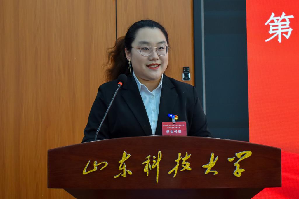校学生会成员赵柯作为嘉宾代表校学生会向土建学院第六次学生代表大会、第四次研究生代表大会的召开表示祝贺,同时结合自己的学生工作经历向代表们分享了自己的体会。