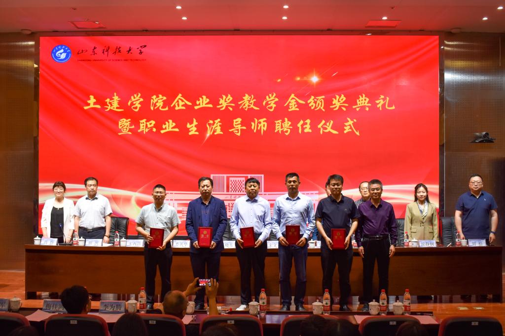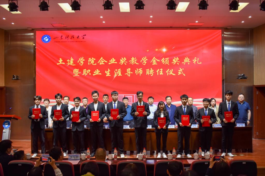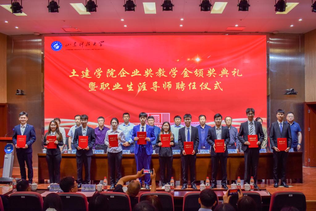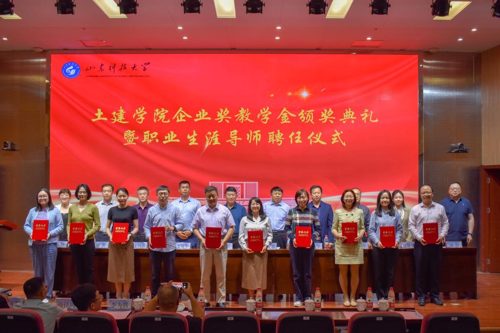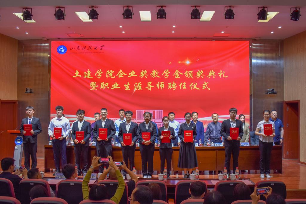 5月24日,土建学院企业奖教学金颁奖典礼暨职业生涯导师聘任仪式在J9-144报告厅举行。烟台平安信息工程职业技能培训学校校长宋文章,日照市政集团常务副总经理娄善华、爆破公司经理焦淑君,山东省路桥集团青岛分公司党总支书记、副总经理曹建军,党总支委员、总工程师梅佳鸿,学校合作发展处处长王晓东,学生工作处副处长靳凯,校团委副书记侯静娴,研究生院副院长刘松,及土建学院师生代表参加了本次颁奖典礼。典礼由土建学院党委副书记高静主持。