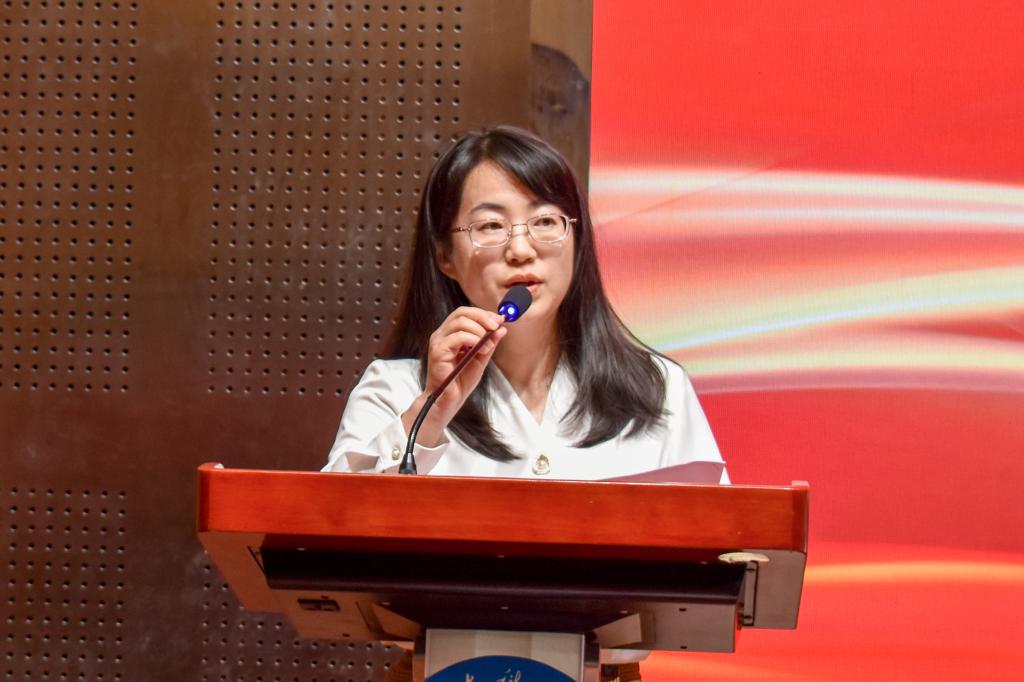 获奖教师代表张莉发言,讲述了在科大的成长经历和工作心得,分享了自己对于“如何成为一名好老师”的思考,表示会以更加严格的标准要求自己,不断提高道德修养,增强授业和解惑能力,做一名有温暖和热情的老师。