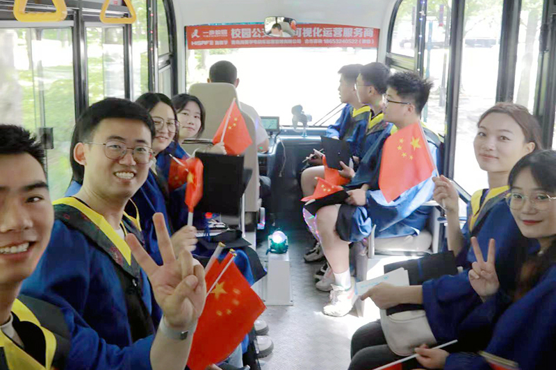 6月2日,第一批土建学院2023届毕业生坐上了专属“宝宝巴士”。这辆“宝宝巴士”从南门出发,途经泰山广场、月季园、水杉林、玉兰大道、银杏大道、名人园,经过学者餐厅、砚湖、图书馆、励志坊、若水园等学校标志性地标和学生常去的地点,停在了土建楼。