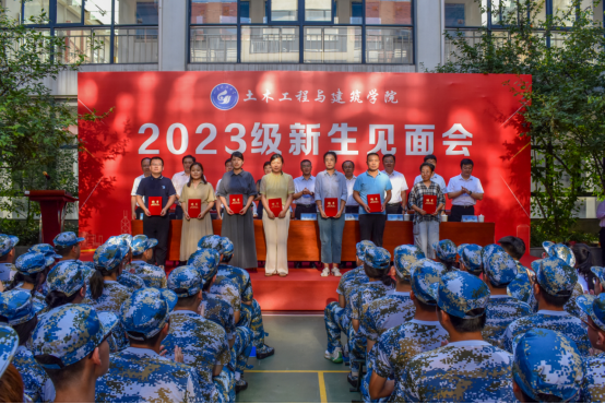 院长王崇革宣读《关于聘任土建学院2023级新生班主任的决定》,希望受聘教师认真履行岗位职责,扎实做好学生思想政治教育、职业规划与学习指导、就业创业指导等工作,协同指导好学生的成长成才。领导班子一同为新生班主任颁发聘书。