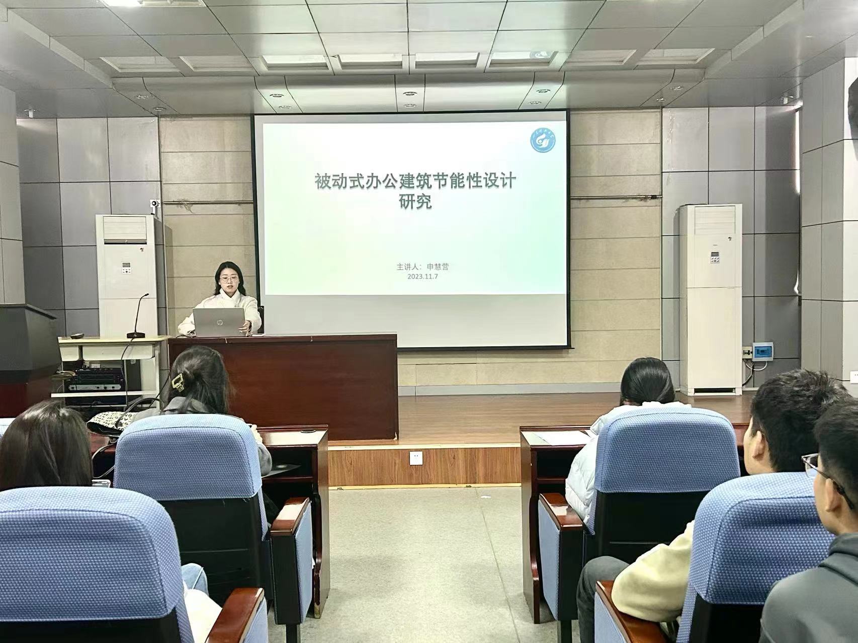 11月7日,由beat365官方网站校研究生会学术科技部主办,beat365官方网站研究生会承办的第一一七一期研究生讲坛在J15-219教室举办。本期讲座由beat365官方网站硕研2022级2班申慧营担任主讲,主题为“被动式办公建筑节能设计研究”。