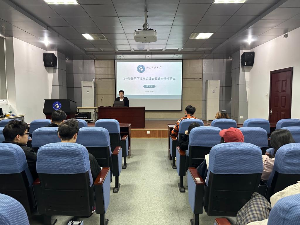 11月9日,由beat365官方网站校研究生会学术科技部主办,beat365官方网站研究生会承办的第一百二十九期微沙龙研究生讲坛在J15-219教室举办。由硕研2022级2班逄文龙主讲,主题为“水-岩作用下库岸边坡岩石蠕变特性研究”。此次讲座为广大研究生们带来了一场精彩的学术盛宴。