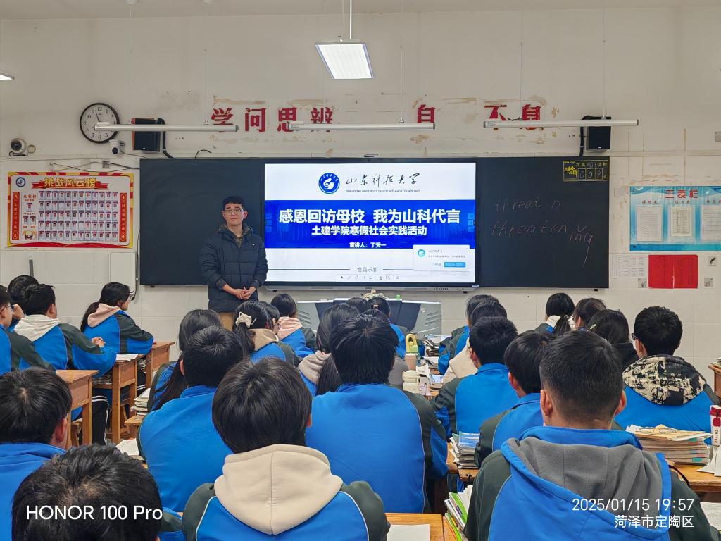 2025年寒假,beat365官方网站积极组织学生分赴黑龙江省、安徽省、福建省、云南省及山东省各地市开展“感恩回访母校,我为山科代言”寒假社会实践活动,同学们满怀热忱地自由组队,带着对高中母校的眷恋与感恩,踏上了意义非凡的回访母校之旅,开启了 “感恩回访母校,我为山科代言” 的寒假社会实践活动。