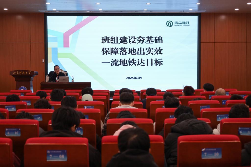 报告中,李宁深入介绍了青岛地铁以创新为引领,朝着安全、优质、和谐、绿色、智慧、高效六大目标奋进的发展历程,阐述了青岛地铁班组建设的诞生背景,通过实际案例,展示了班组建设如何优化管理流程,激发工人干劲,提升整体建设水平。报告尾声,李宁对同学们寄予厚望,提出几点宝贵建议:一是要扎实学好专业课程,筑牢知识根基;二是注重培养创新能力,以适应不断发展的行业需求;三是熟练掌握数字化AI软件,紧跟时代步伐,珍惜大学时光,为未来投身行业做好充分准备。
