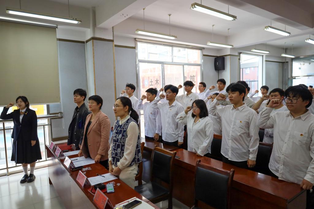 4月28日,为进一步加强共青团队伍建设,引导青年学子坚定理想信念,传承红色基因,增强新时代青年的责任感与使命感,土建学院于J15-201教室举行2025上半年新发展团员入团仪式,土建学院党委副书记、副院长高静,团委辅导员老师史卫平、张方源、董继先、赵珂,优秀团员代表、全体新团员参加。仪式由张方源主持。