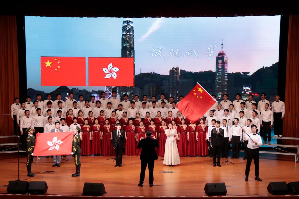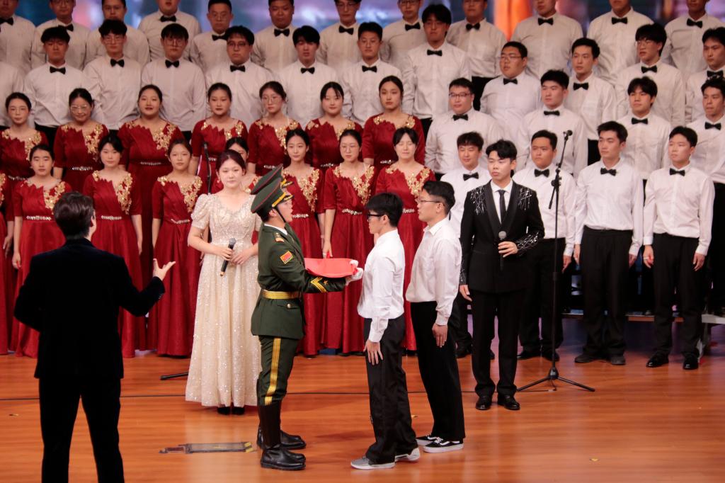 比赛中,土建学院合唱团以高亢嘹亮的歌声、整齐划一的动作和饱满的热情惊艳全场。合唱节目中融合了小提琴、朗诵、情景剧、舞蹈等表演形式,其中以中英两国政府香港政权交接仪式为蓝本创作的情景剧,生动再现了那个令中华民族热血沸腾、举国欢庆的历史性时刻,深深打动了评委和观众。随着“此生无悔入华夏,来世还做中国人!”的呐喊响彻全场,演出戛然而止,随即雷鸣般的掌声席卷全场,这不仅是对合唱团倾情演绎的肯定,更是对全体师生爱国情怀的深情致敬。