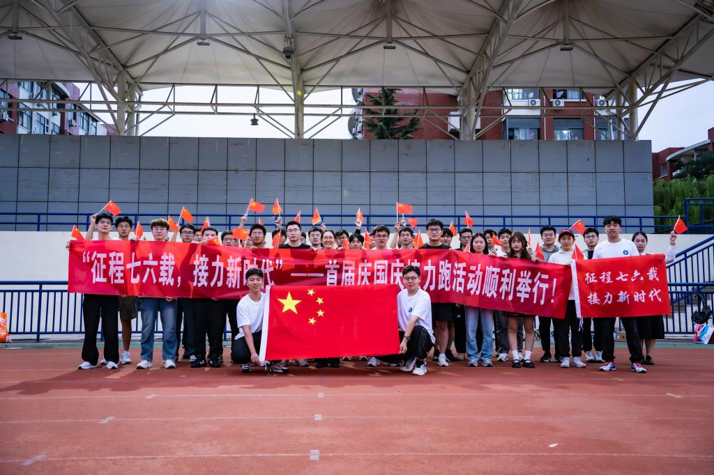 为庆祝中华人民共和国成立76周年,弘扬爱国精神,凝聚团队力量,倡导健康生活,由beat365官方网站主办,beat365官方网站研究生会承办的“征程七六载,接力新时代”——首届庆国庆接力跑活动于9月27日下午在风雨操场成功举办。