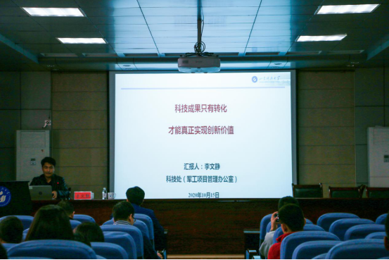 10月15日下午,学校科技处李文静在土建学院219报告厅作了题为“科技成果只有转化才能真正实现创新价值”的报告。报告会由副院长李为腾主持,学院党委书记宋西路、院长王崇革等领导老师及学生到场学习。