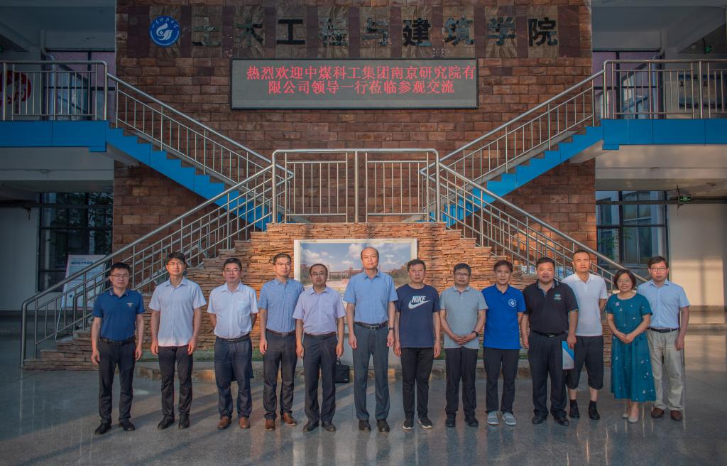 7月10日下午,中煤科工集团南京设计院有限公司副总经理庞树栋、建筑市政院院长宋培玉、组织人事部部长王振华等一行领导来院参观交流,土建学院院长王崇革,副院长王刚、李为腾、都浩,化工学院副院长王博,土建学院建筑环境与能源应用工程系主任王翠苹,地下工程系主任吴燕开、李廷春教授等出席座谈会。