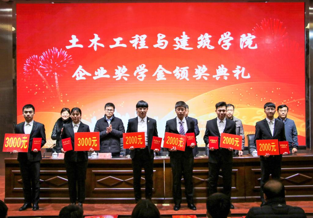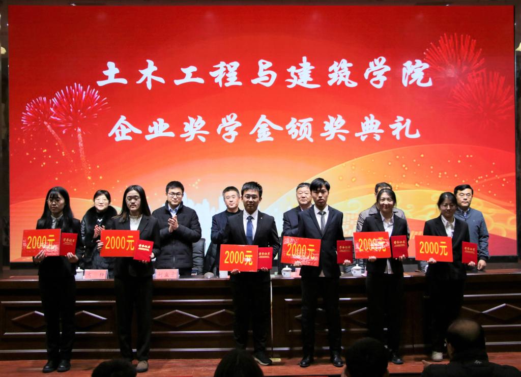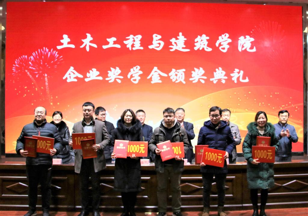 大会首先由王荣超宣读《关于公布土建学院2020年企业奖教金、奖学金获奖名单的通知》,获奖师生上台领奖。