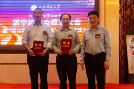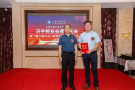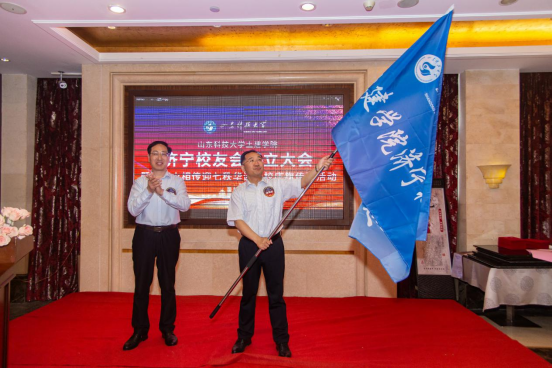 孙鹤汀代表学校对土建学院济宁校友会的成立表示热烈祝贺,他回顾了学校与校友工作的发展历史,与校友们分享了学校近年来取得的成绩和“一家人一家亲,守望相助,共荣共进”的校友工作理念,他强调,校友会是联系学校和校友的情感纽带和交流平台,希望校友会建成加强联系,促进交流,增进友情,共享互助,促进校友事业发展,襄助母校事业发展的平台。他强调,母校70华诞是37万海内外校友共同的节日,校庆旗传递是校庆系列活动之一,校庆旗在山东省内各校友会及全球范围内各校友会进行接力传递。希望广大校友积极参与校庆活动,更好传承学校文化,凝聚校友力量,扩大社会影响,并诚邀广大校友回母校同襄盛会,畅叙友情。